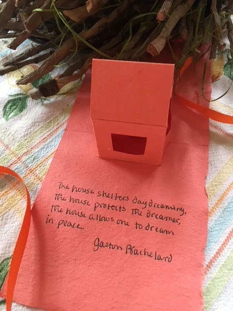I’m acutely aware of all this when I read the gentle words from philosopher Gaston Bachelard, chosen by Helen for her sweet little pop-up houses: